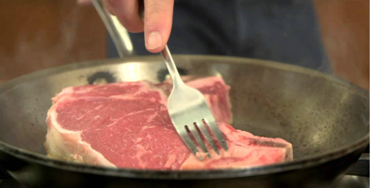 Eti kısık ateşte mühürlemekKısık ateşte mühürlediğinde et suyunu hapsetmez ve lezzetinden ödün verir. Doğrusu, yüksek ateşte mühürlemektir.
